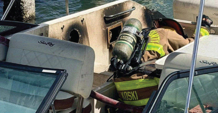 As of this writing, the fire has been extinguished, the power to the dock area has been secured, and the fire has been contained to the boat.