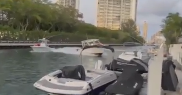 NORTH MIAMI BEACH, FLA. (WSVN) – A boat capsized after a crash in a North Miami Beach canal that was caught on camera and prompted